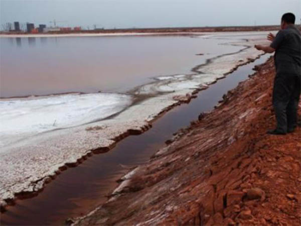 有鋁廠,鋁的提取過程是把鋁土礦與液態(tài)堿經(jīng)過高溫高壓處理,將礦石中的氧化鋁作用后變成有用成分氫氧化鋁,以及無用成分赤泥。每2.2噸鋁土礦,可提取1噸氧化鋁,產生1.2噸赤泥。鋁廠產生的赤泥沒辦法處理,只能堆到溝里,每五六年就要新建一條專門堆放赤泥的溝。